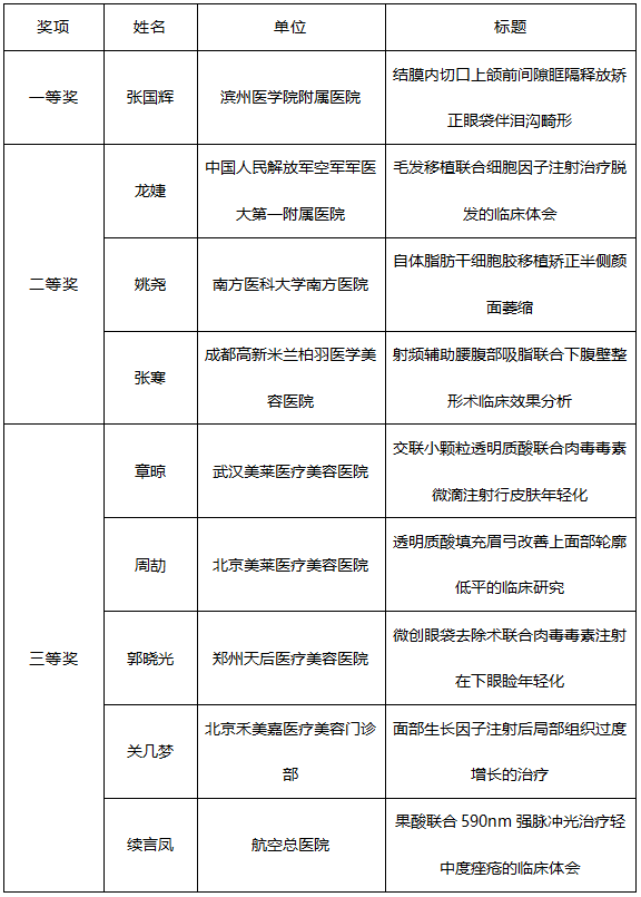2023年第一届“伊妍仕杯”中国医疗美容青年医师奖获奖名单